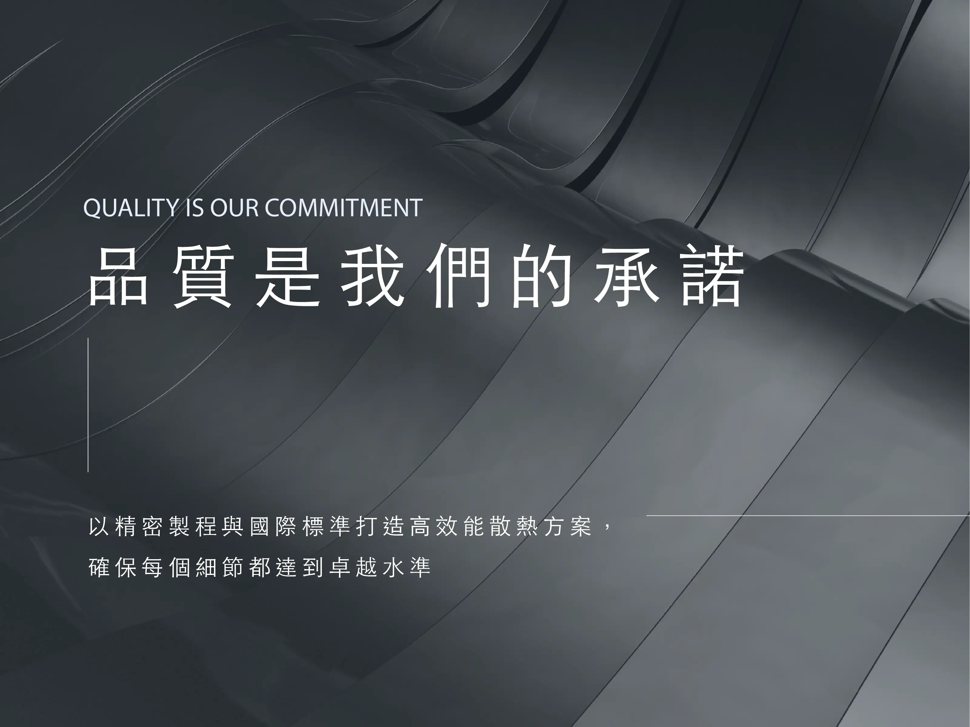 公司專注於 散熱器材及其關鍵零組件之設計與製造,並依循 ISO 10380 與 ISO 16232 等國際管理規範,確保產品在 品質、可靠性與潔淨度 方面符合國際客戶要求,同時持續投入研發資源,推動 新產品開發與技術創新,支援智慧製造與高階應用發展。